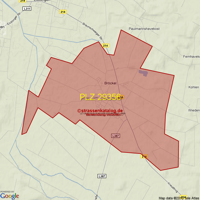 Postleitzahlgebiet (PLZ) 29356