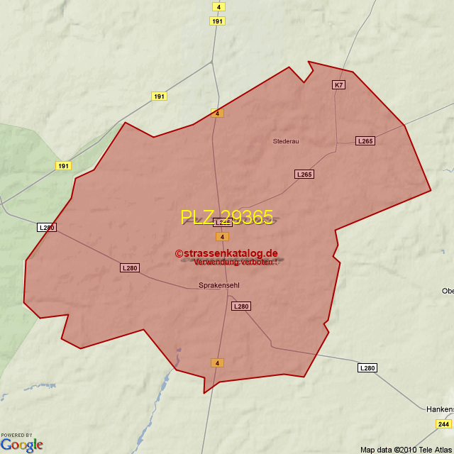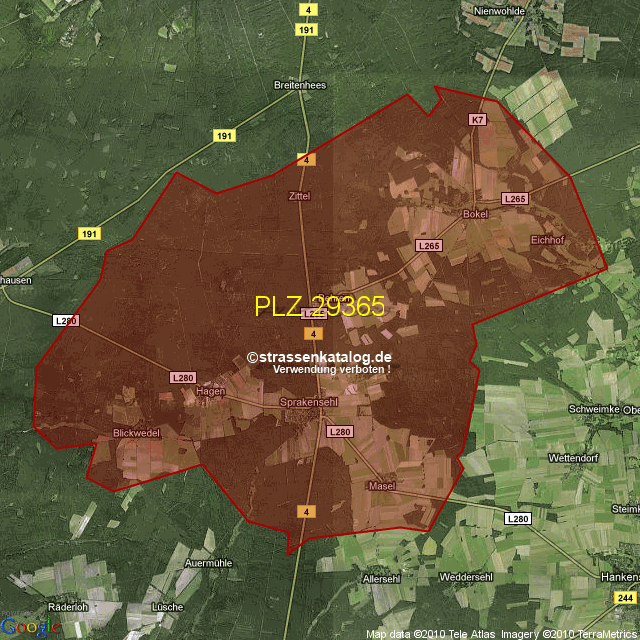 Postleitzahlgebiet (PLZ) 29365