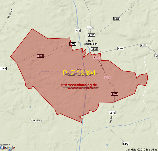 Straßenverzeichnis zur Postleitzahl 29394