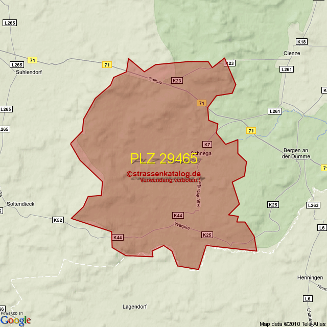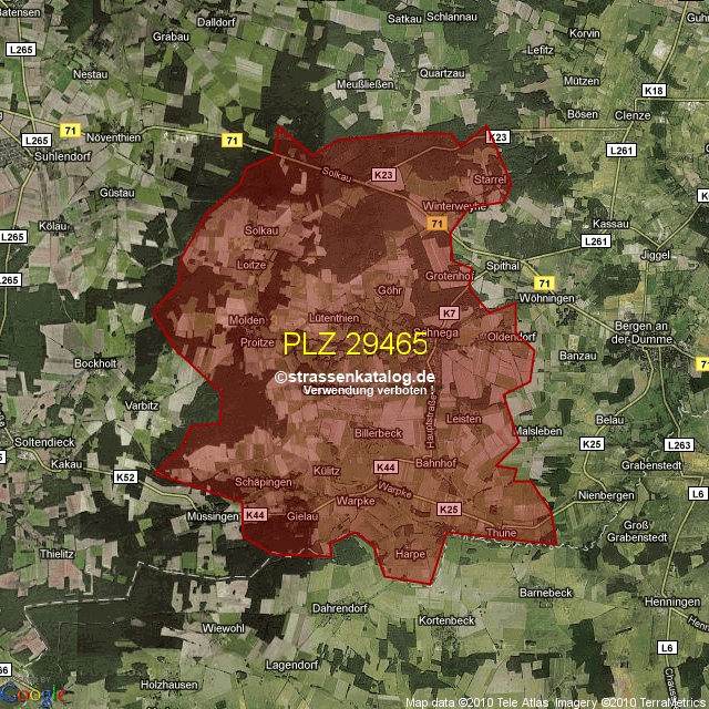 Postleitzahlgebiet (PLZ) 29465