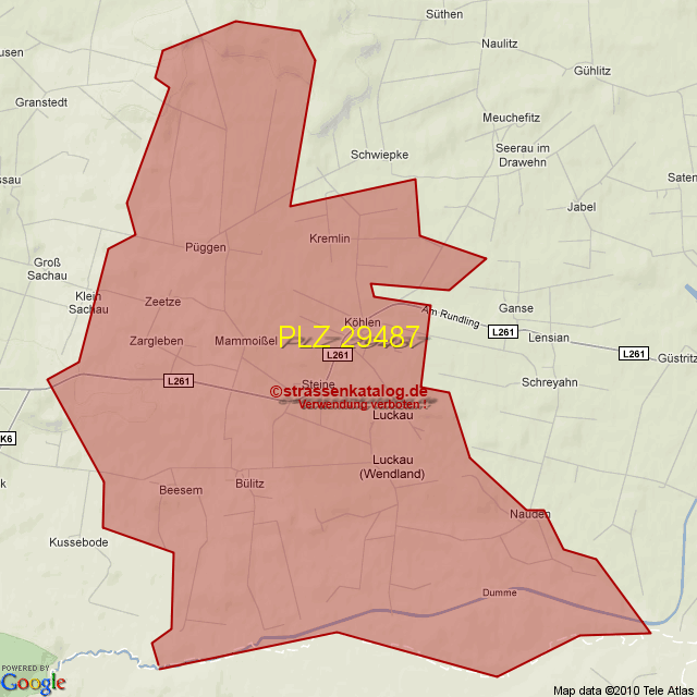 BeesemBülitzKöhlenKremlinMammoißelNaudenPüggenSteineZarglebenZeetzeAm AngerBurgLuckauRosenstraßeSanden