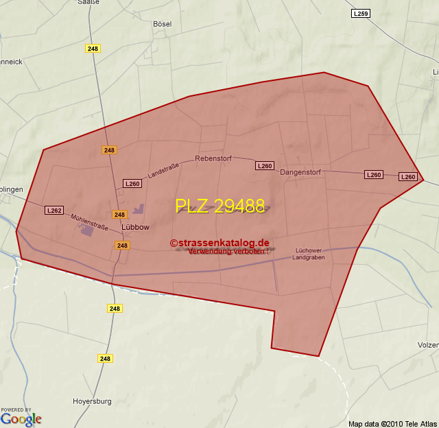 Ortsteile von Lübbow mit der PLZ 29488