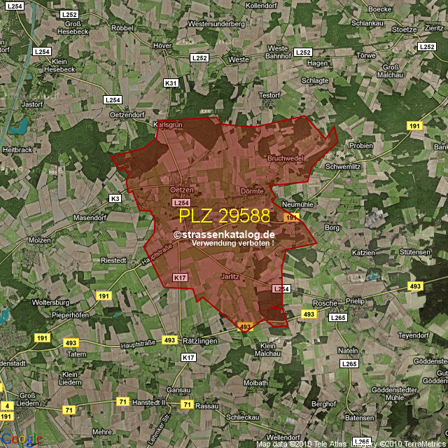 Postleitzahlgebiet (PLZ) 29588