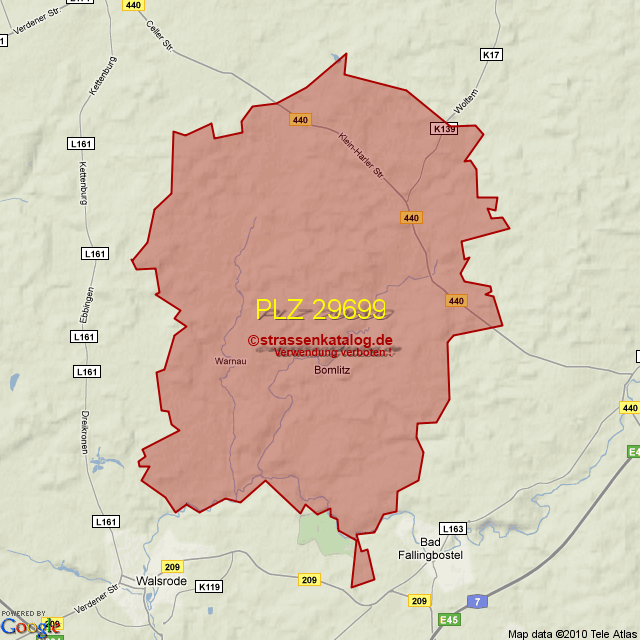 Postleitzahlgebiet (PLZ) 29699