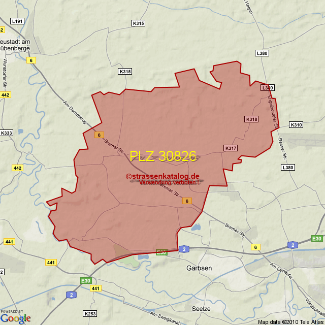 Zu der Postleitzahl 30826 wurden 1 Orte und 9 Ortsteile gefunden.
