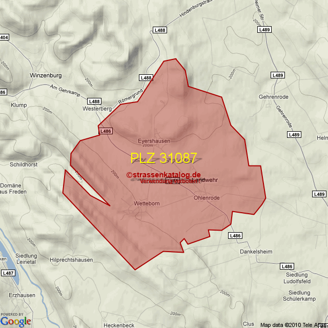 Postleitzahlgebiet (PLZ) 31087