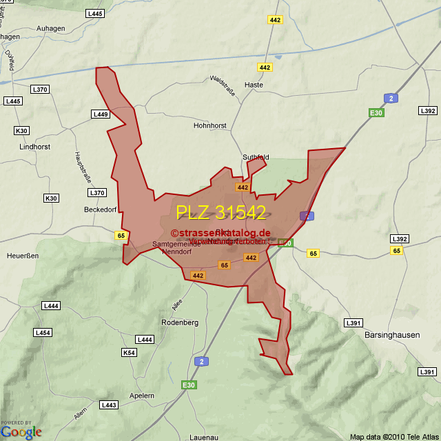 Straßenverzeichnis zur Postleitzahl 31542