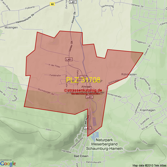 Straßenverzeichnis zur Postleitzahl 31708