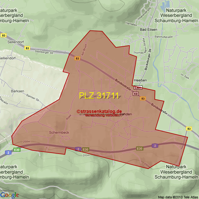 Straßenverzeichnis zur Postleitzahl 31711