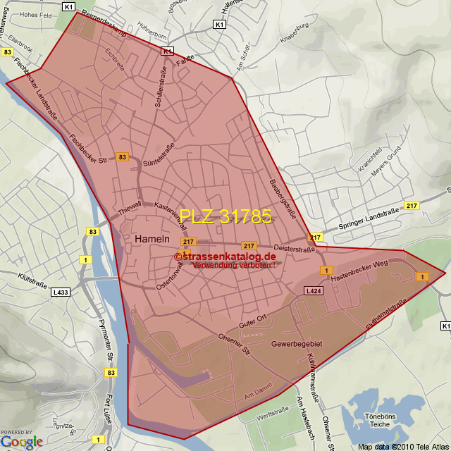 Straßenverzeichnis zur Postleitzahl 31785