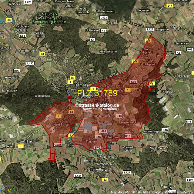 Postleitzahlgebiet (PLZ) 31789