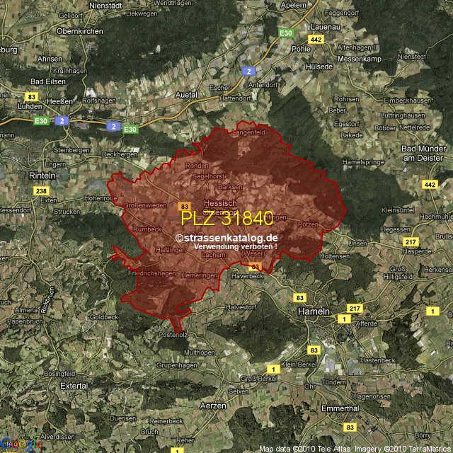 Ortsteile von Hessisch Oldendorf mit der PLZ 31840