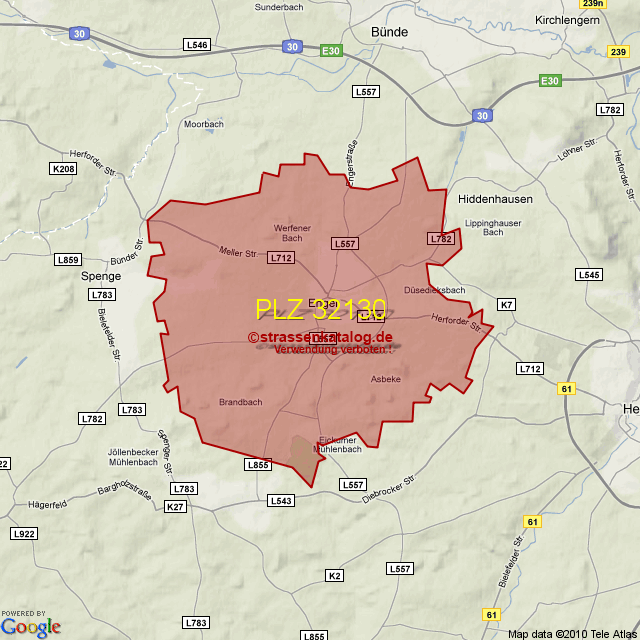 Postleitzahlgebiet (PLZ) 32130