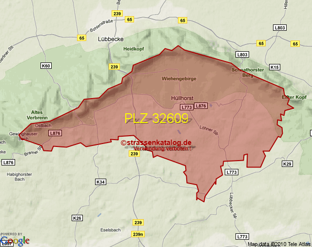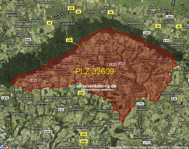 Ortsteile von Hüllhorst mit der PLZ 32609