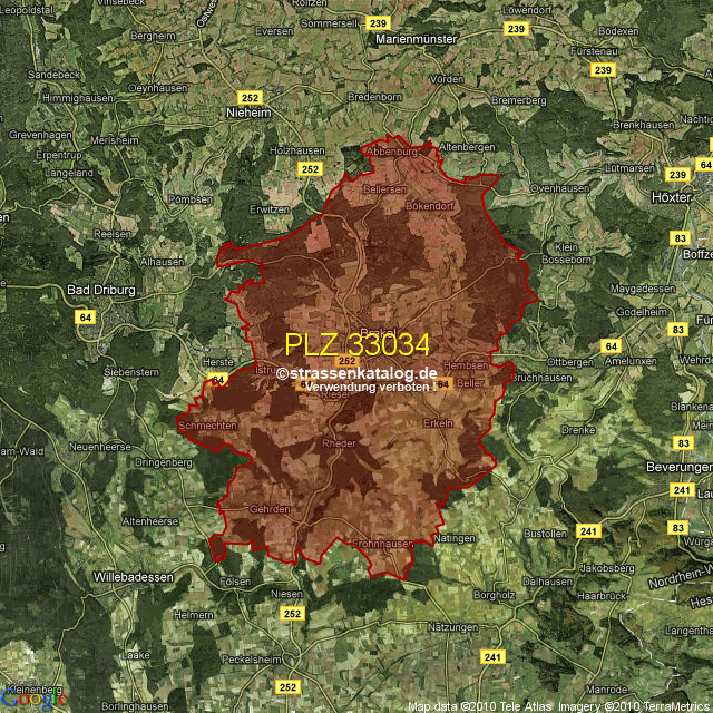 Postleitzahlgebiet (PLZ) 33034