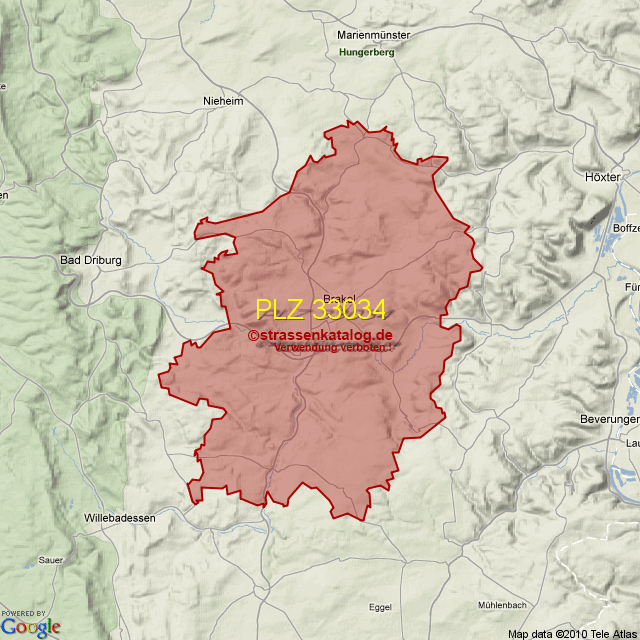 Ortsteile von Brakel mit der PLZ 33034