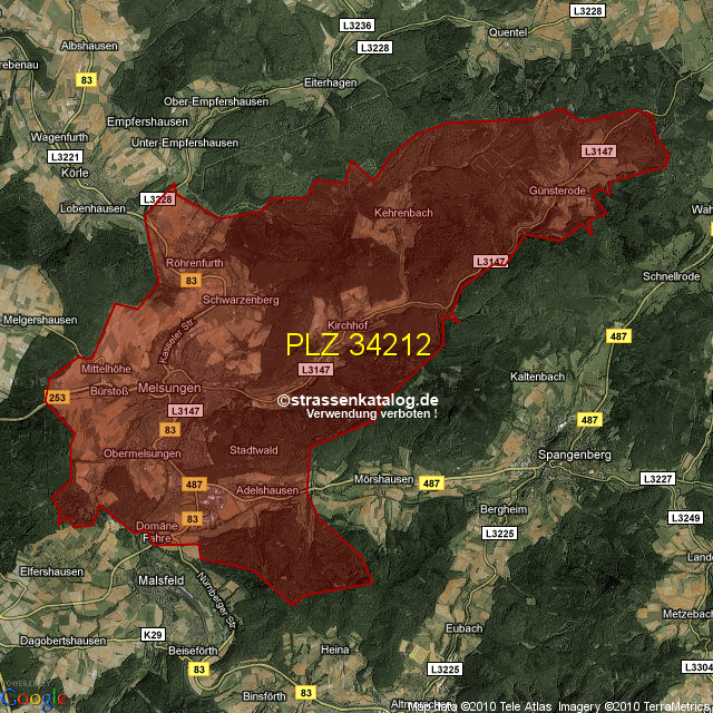 Ortsteile von Melsungen mit der PLZ 34212