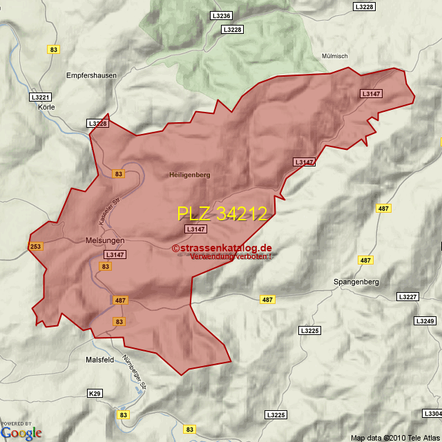 Postleitzahlgebiet (PLZ) 34212