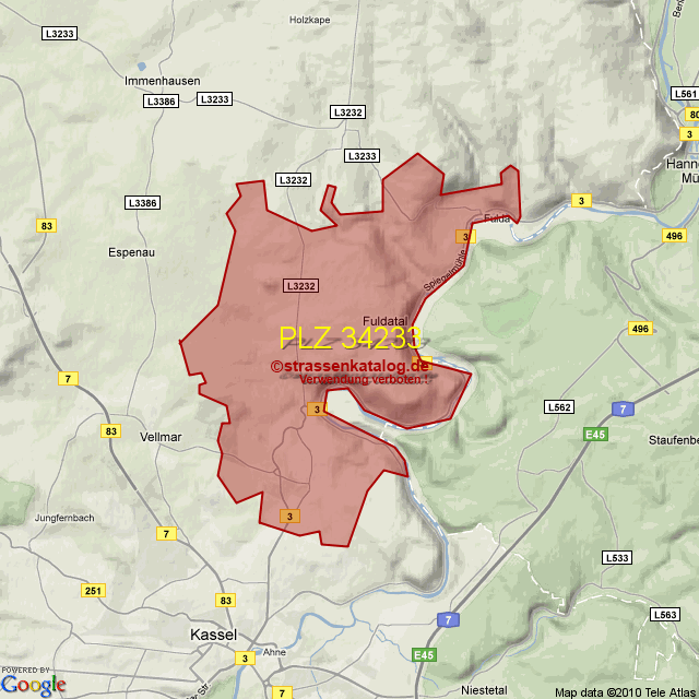 Postleitzahlgebiet (PLZ) 34233