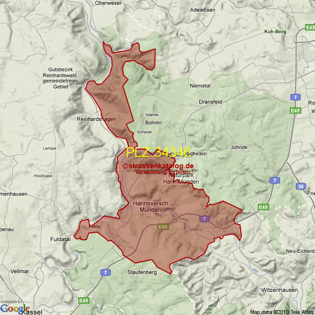 Ortsteile von Hann. Münden mit der PLZ 34346