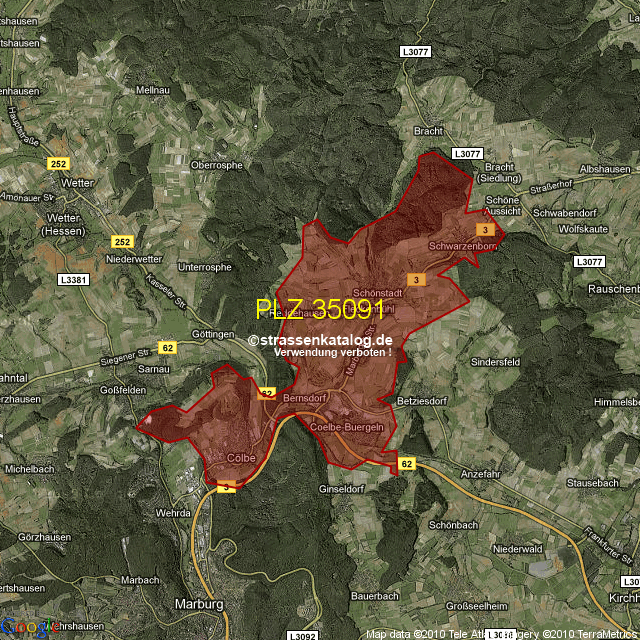 Ortsteile von Cölbe mit der PLZ 35091