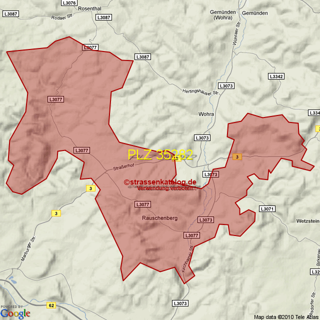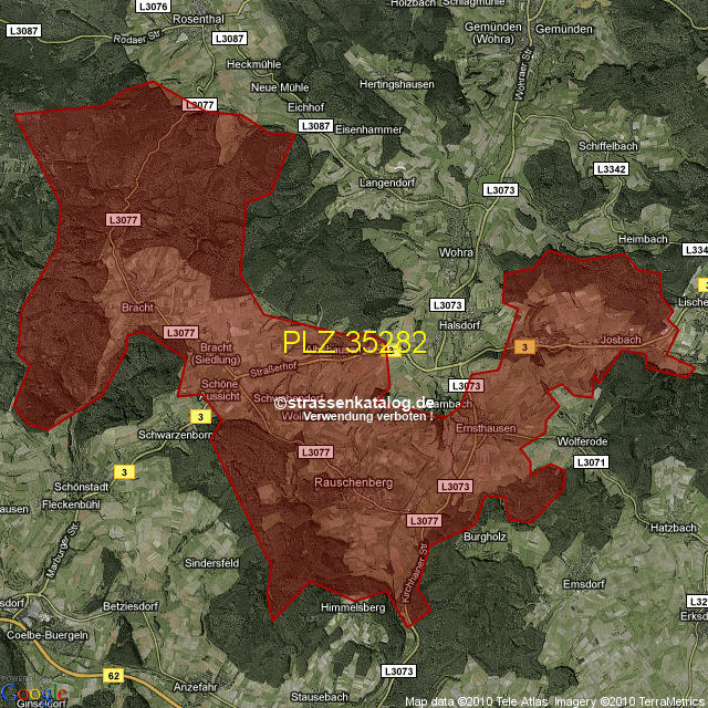 Ortsteile von Rauschenberg mit der PLZ 35282