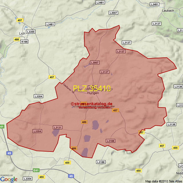 Postleitzahlgebiet (PLZ) 35410