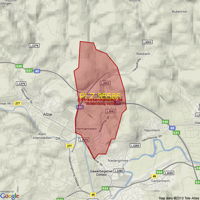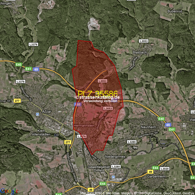 Straßenverzeichnis zur Postleitzahl 35586