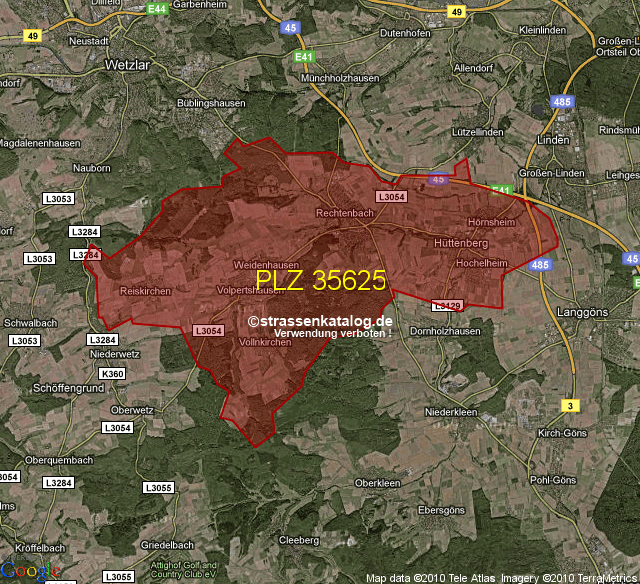 Postleitzahlgebiet (PLZ) 35625