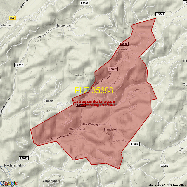 Straßenverzeichnis zur Postleitzahl 35688