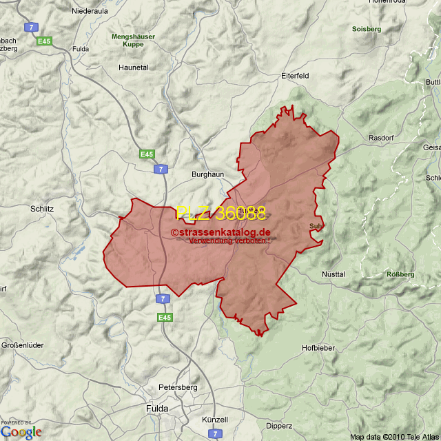 Postleitzahlgebiet (PLZ) 36088