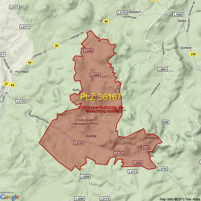 Postleitzahlgebiet (PLZ) 36167