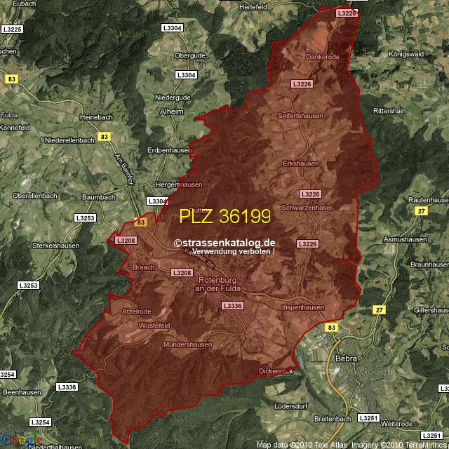 Postleitzahlgebiet (PLZ) 36199