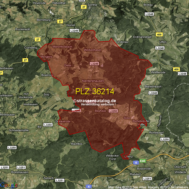 Straßenverzeichnis zur Postleitzahl 36214