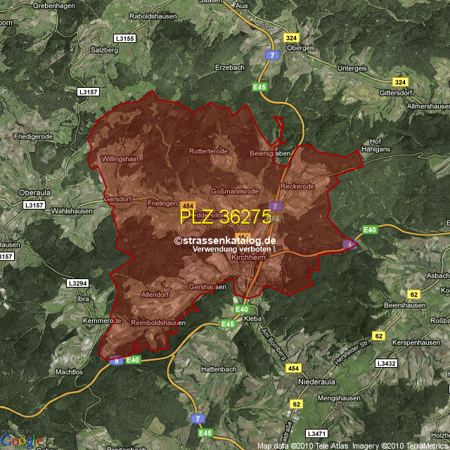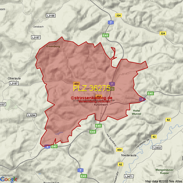 Postleitzahlgebiet (PLZ) 36275