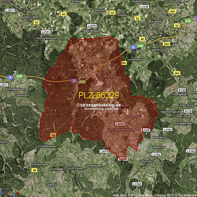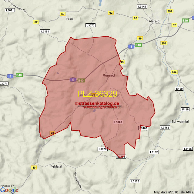 Postleitzahlgebiet (PLZ) 36329