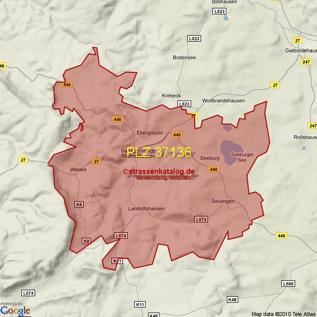 Postleitzahlgebiet (PLZ) 37136