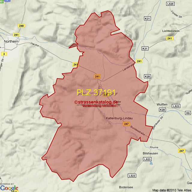 Ortsteile von Katlenburg-Lindau mit der PLZ 37191