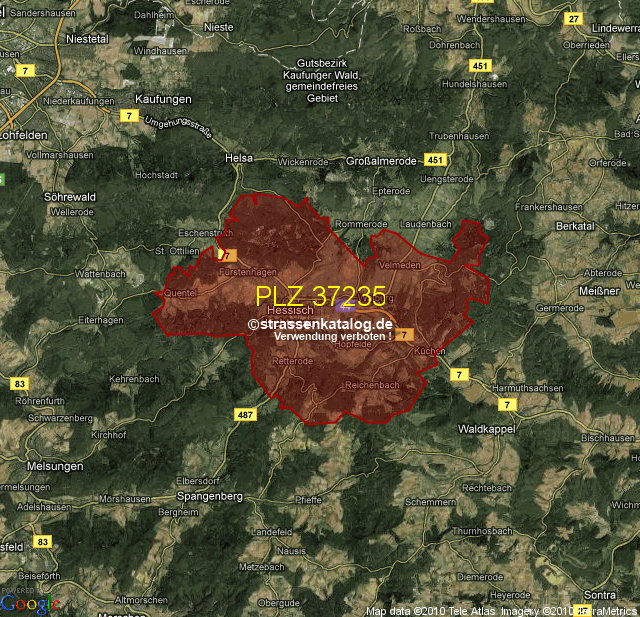 Ortsteile von Hessisch Lichtenau mit der PLZ 37235