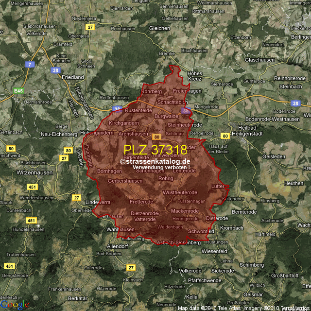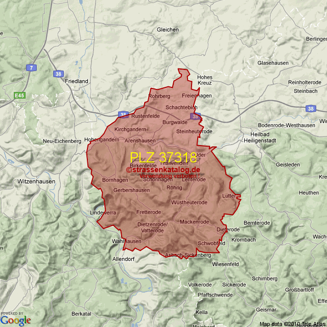 Postleitzahlgebiet (PLZ) 37318