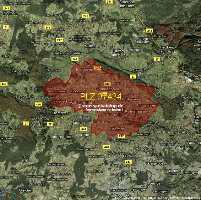 Ortsteile von Gieboldehausen mit der PLZ 37434