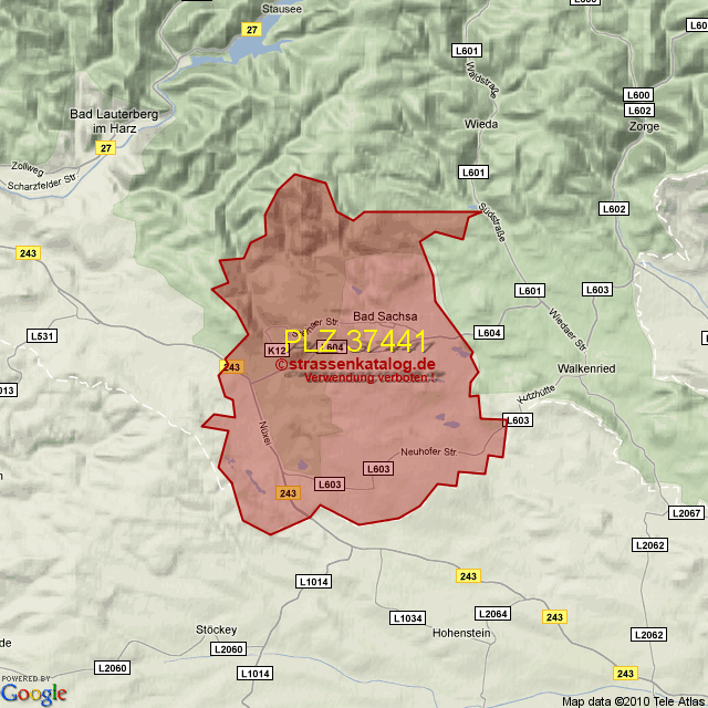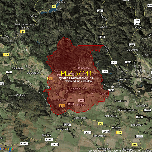 Ortsteile von Bad Sachsa mit der PLZ 37441