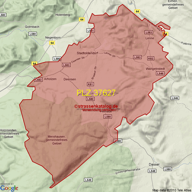 Ortsteile von Wangelnstedt mit der PLZ 37627
