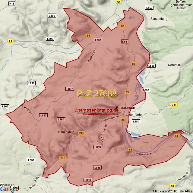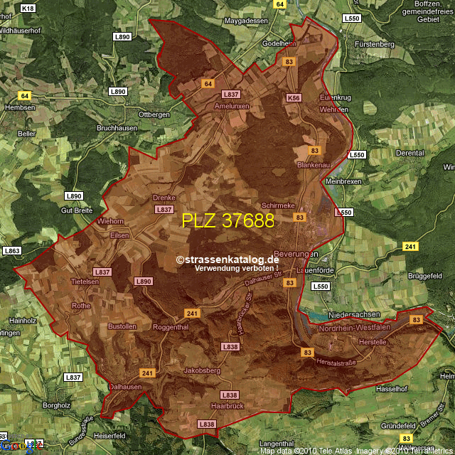 Postleitzahlgebiet (PLZ) 37688