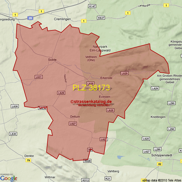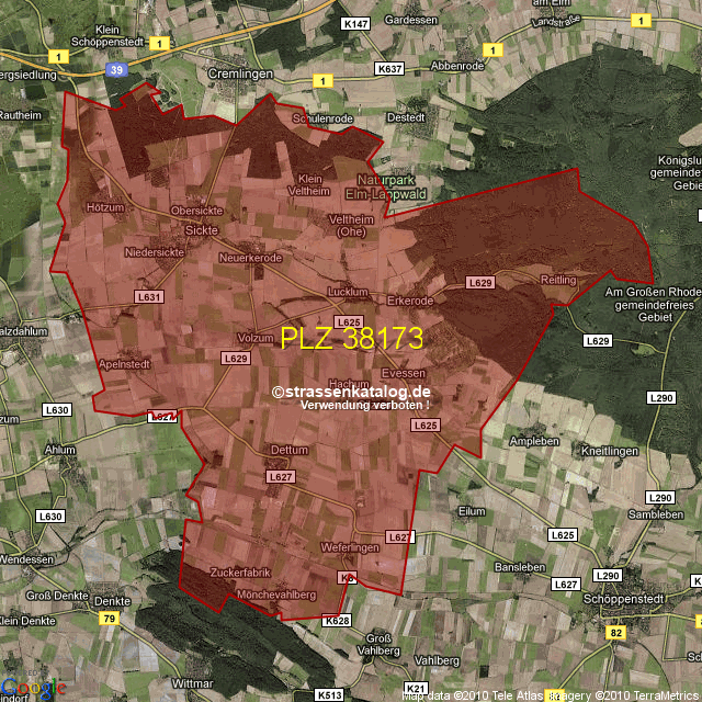 Postleitzahlgebiet (PLZ) 38173