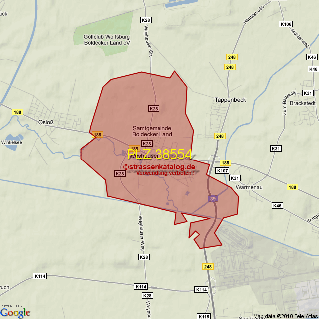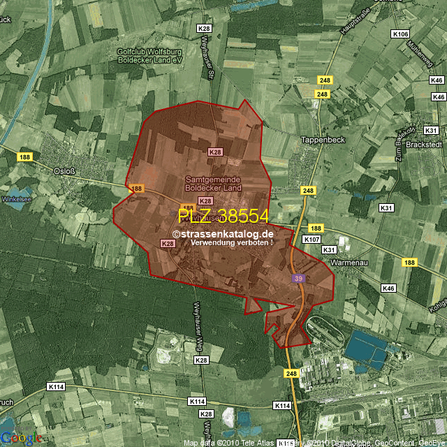 Postleitzahlgebiet (PLZ) 38554