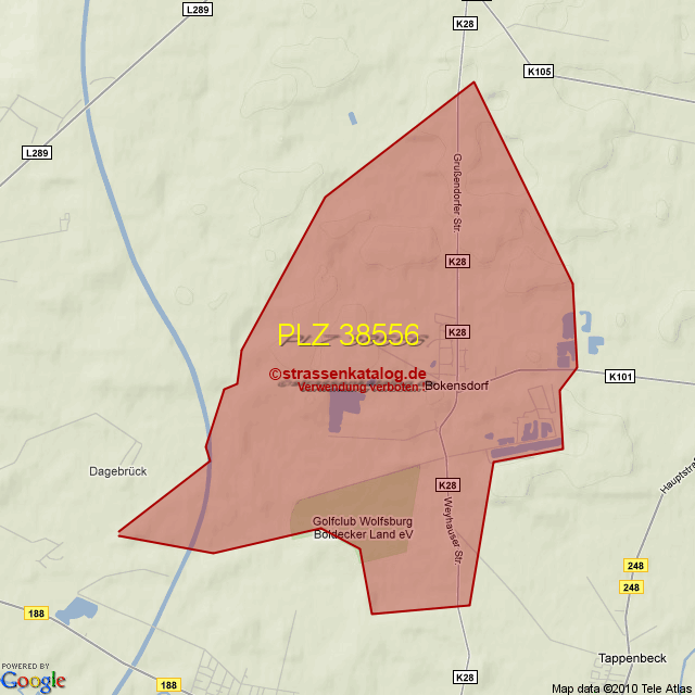Postleitzahlgebiet (PLZ) 38556