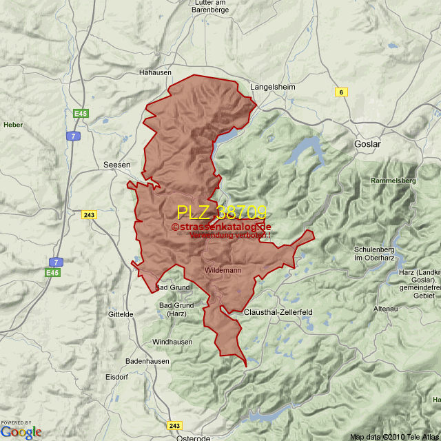 Postleitzahlgebiet (PLZ) 38709