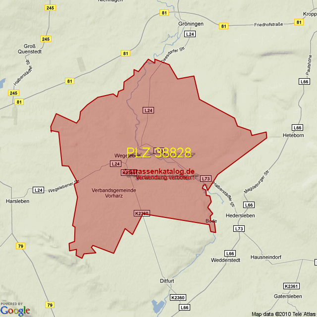 Ortsteile von Wegeleben mit der PLZ 38828