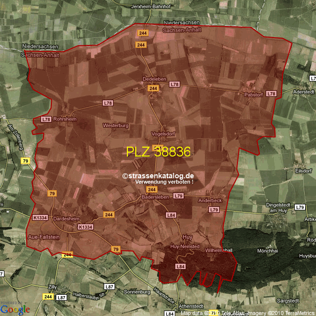 Ortsteile von Huy-Neinstedt mit der PLZ 38836